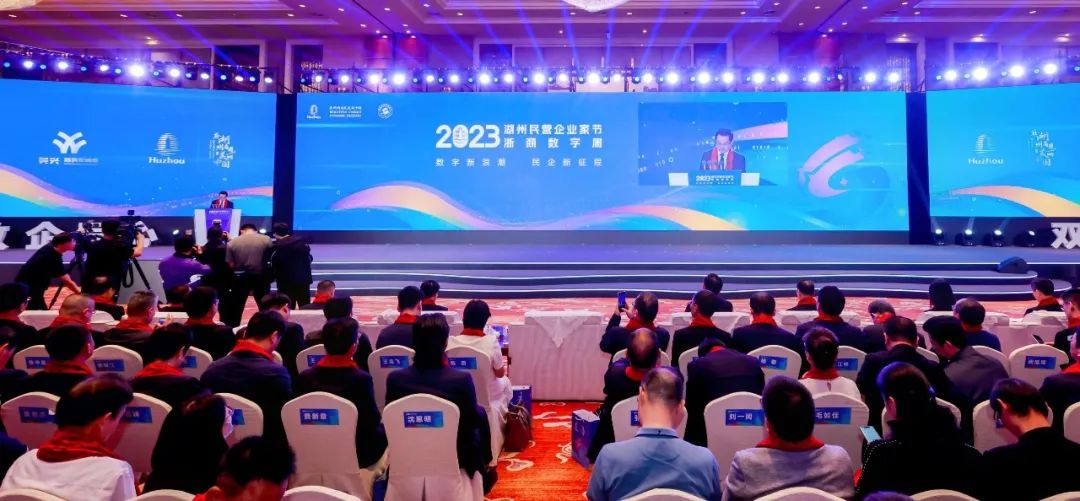 省、市有关领导和张天任董事长,以及相关企业家启动2023湖州民营企业家节暨浙商数字周开幕仪式。